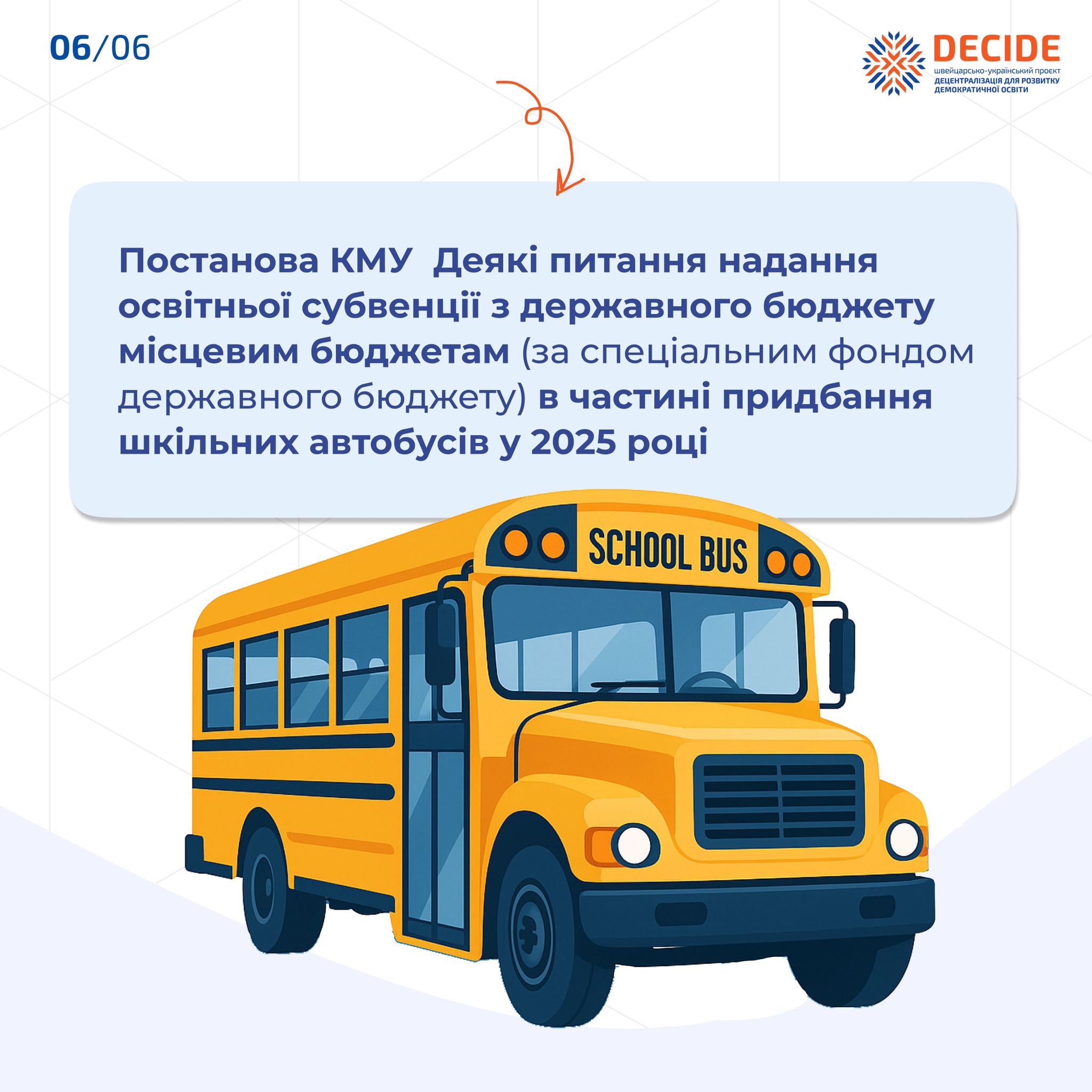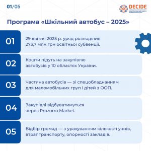 В інфографіці від експертів Проєкту DECIDE — усе про програму «Шкільний автобус — 2025».