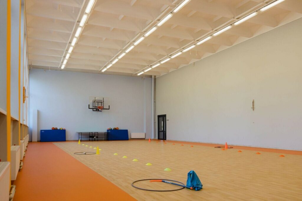 У спортивному залі оновлено покриття – тепер тут сучасний лінолеум, встановлено професійні баскетбольні щити та інше необхідне обладнання для повноцінних занять спортом.